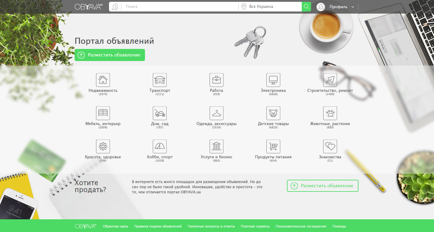– Портал OBYAVA.ua – многоцелевой и затрагивает все сферы жизнедеятельности, от объявлений о недвижимости до знакомств, от продажи автомобилей до комнатных растений. Каждый найдет себе по душе нужную рубрику или раздел.