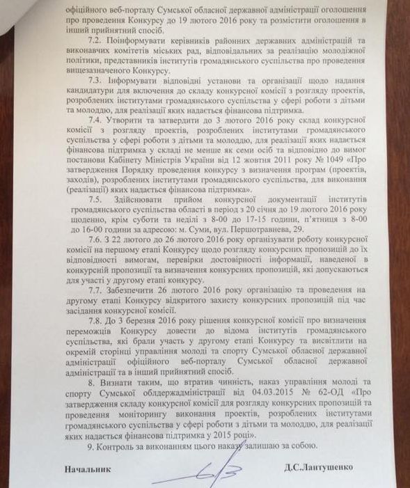 Об этом на своей странице в фейсбуке написал начальник управления молодежи и спорта Сумской ОГА Дмитрий Лантушенко.