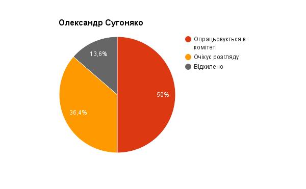 Еще один депутат от Сумщины, член фракции партии «БЛОК ПЕТРА ПОРОШЕНКО» Александр Сугоняко подал на рассмотрение парламнтарив 22 законопроекта, из которых пока ни один не был поддержан коллегами.