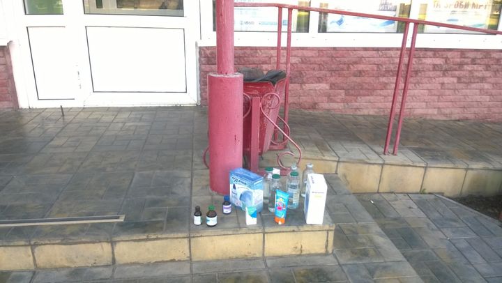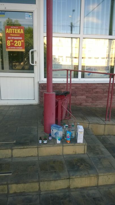 Утренние прогулки по городу полны сюрпризов. Сумчанка наткнулась на бесхозный арсенал медпрепаратов на крыльце одной из местный аптек.