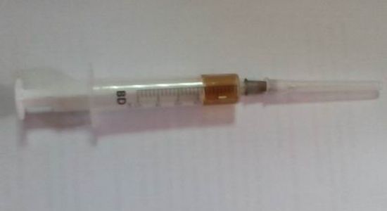 При осмотре женской сумочки этого лица было обнаружено и изъято медицинский шприц объемом 5 мл заполненный на 1 мл жидкостью коричневого цвета внешне похожей на наркотическое средство «Опий ацителированный».