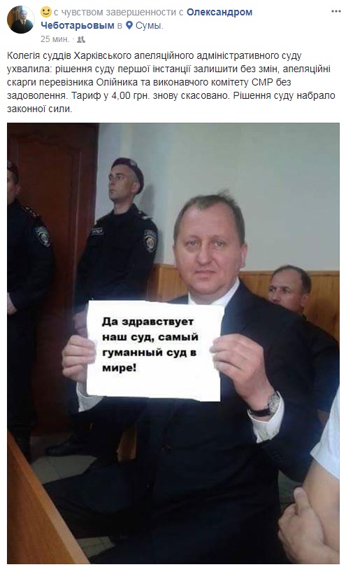 Первый пошел: суд отменил 4 грн для одного из сумских перевозчиков