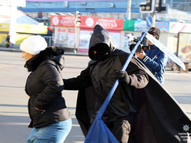 Однак цього разу правопорушників зустрічали не тільки інспектори патрульної поліції, а й журналісти та умовний персонаж «Смерть із косою».