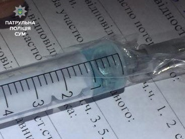 Під час проведення поверхневої перевірки поліцейські виявили у 30-річного сумчанина шприц із рідиною блакитного кольору, схожою на наркотичну.