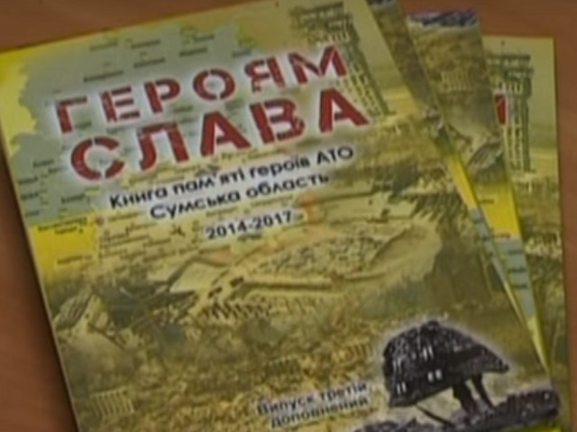 У Сумах презентували «Книгу пам’яті Героїв АТО Сумської області». Це – третє видання. У нього увійшло 136 історій про тих бійців Сумщини, хто загинув під час збройного конфлікту на сході України. Над книгою працювали півроку близько 20 журналістів. Вийшла вона накладом у тисячу примірників. Частину з них безкоштовно передадуть родинам загиблих.