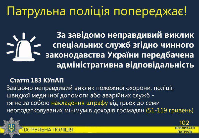 Шановні громадяни! Не викликайте поліцію без причини, адже, можливо, саме в цей момент хтось дійсно потребуватиме нашої допомоги!