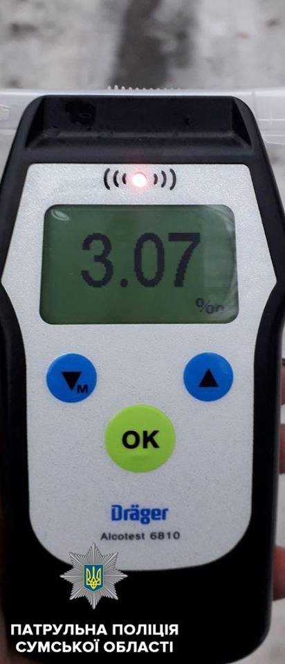 Освідування на стан сп’яніння зафіксувало в чоловіка 3, 07 проміле алкоголю, що в понад 15 разів перевищує допустиму норму.
