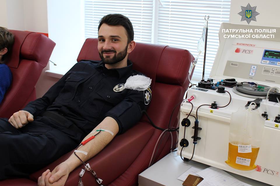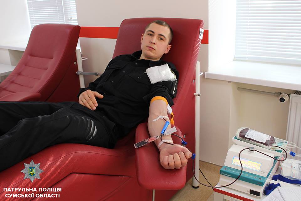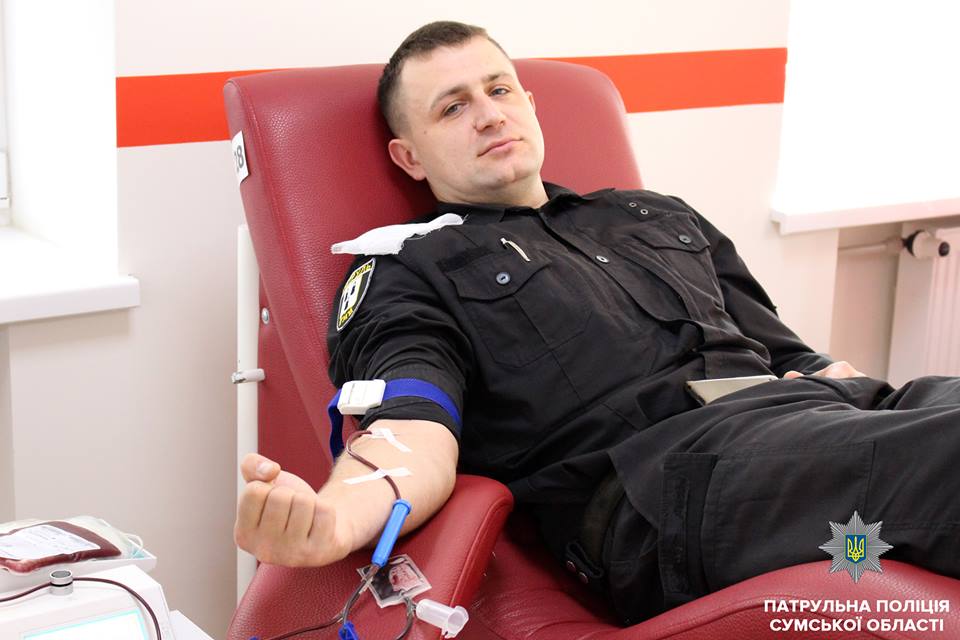 8 лютого, на другий вихідний день, після двох нічних змін до Сумський обласний центр служби крові завітали близько 10 працівників 4-ї роти батальйону Управління патрульної поліції в Сумській області.