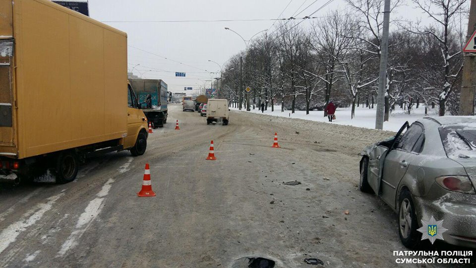 Авария на Харьковской: столкнулись грузовик и Mazda (+фото) обновлено