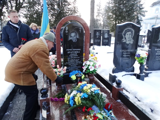 Ранок 20 лютого у Сумах розпочався із покладання квітів до могили Героя України, Героя Небесної Сотні, Почесного громадянина міста Суми Олексія Братушки на Алеї Слави на Центральному кладовищі.