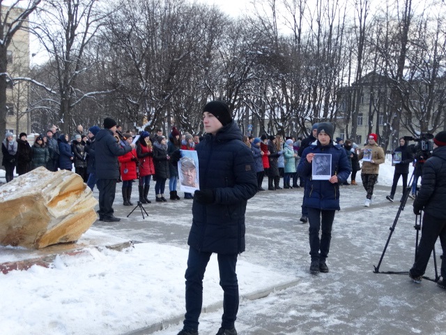 Присутні вшанували хвилиною мовчання пам’ять загиблих Героїв Небесної Сотні, всіх українських патріотів, які віддали свої життя за Україну. Під час символічного мітингу-реквієму учасники тримали в руках фотографії загиблих борців за свободу.