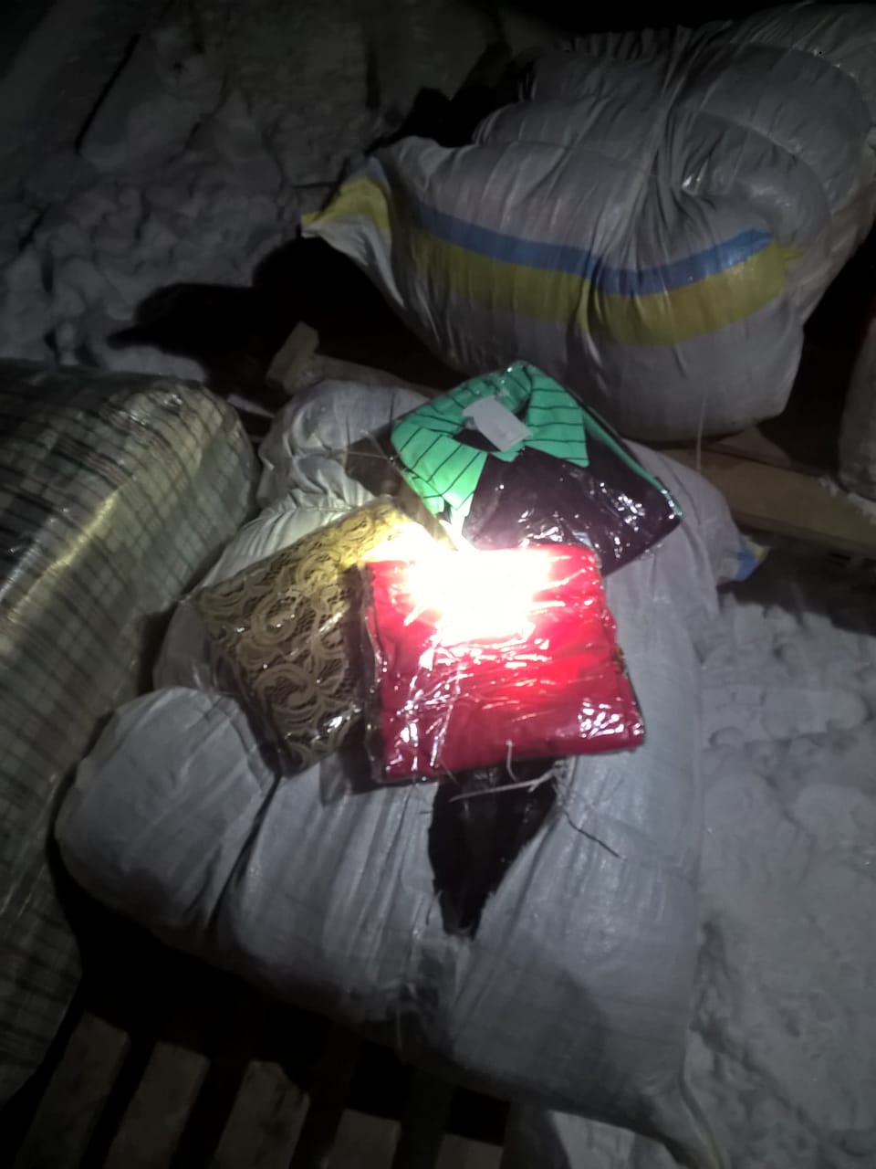 Прикордонний патруль, очолюваний дільничним інспектором прикордонної служби, перевіряючи ділянку держрубежу в районі н.п. Олександрівка, в безпосередній близькості від кордону виявив 3 тюки з одягом в асортименті та 3 ящики із запчастинами.