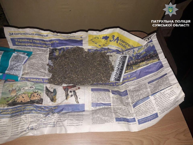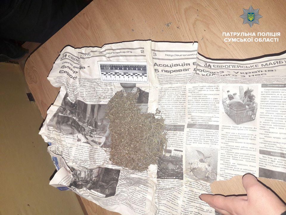 Під час з’ясування всіх обставин, на столі поліцейські помітили розкритий паперовий згорток, у якому знаходилася подрібнена речовина рослинного походження, схожа на наркотичну.