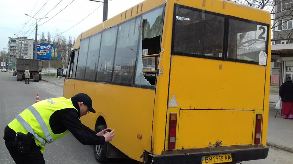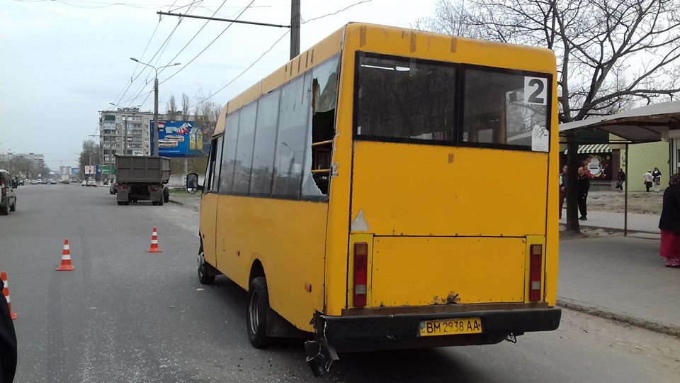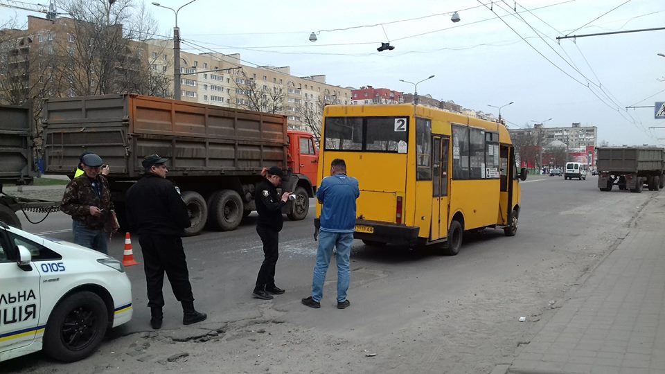 Сьогодні, 17 квітня, близько 12:00 по вул. Прокоф'єва (район кафе "Рідне місто") сталося ДТП за участі вантажівки та маршрутки №2.