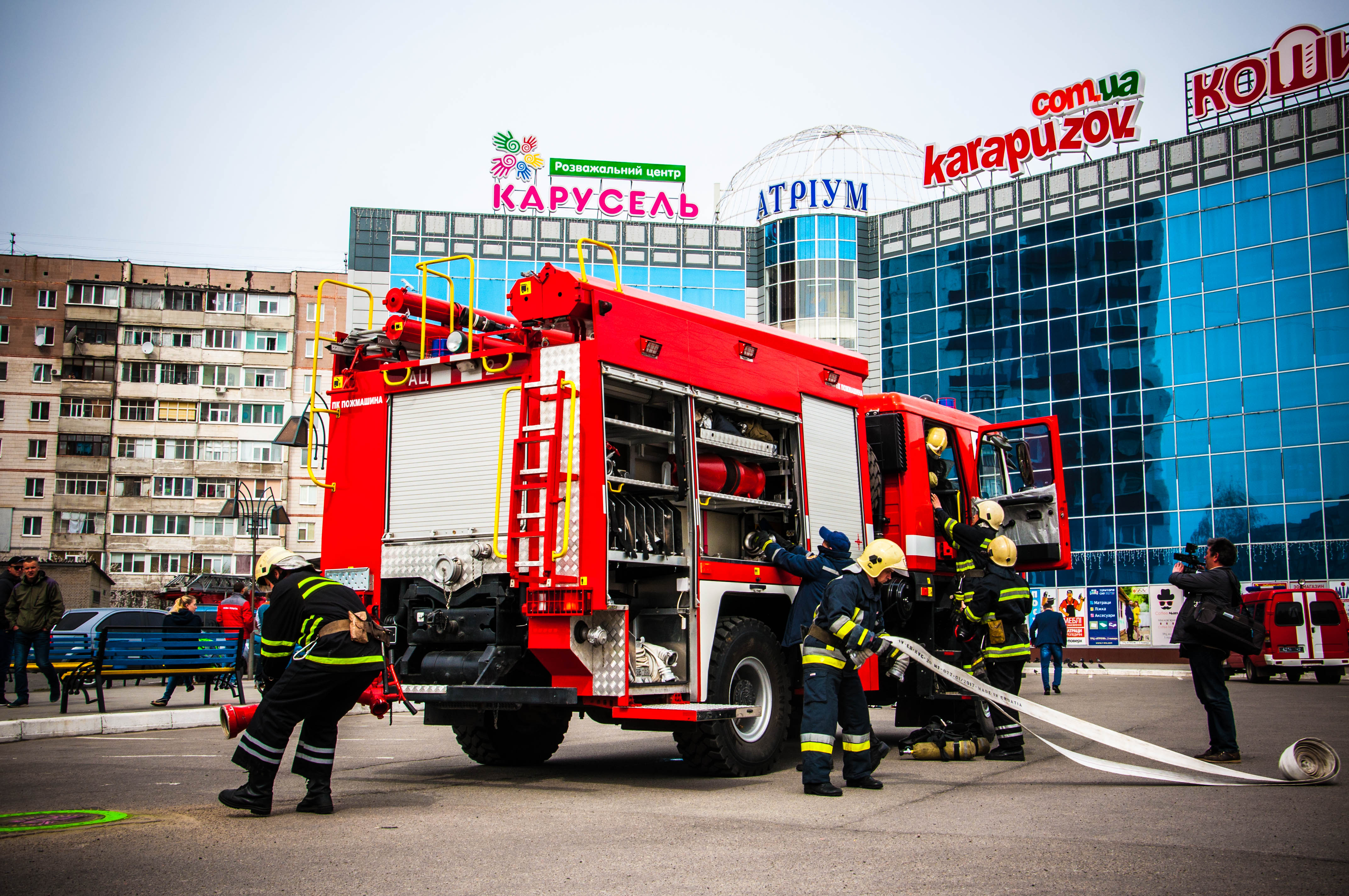 До місця події прибули пожежно-рятувальні підрозділи обласного центру. Ланки газодимозахисної служби обстежили приміщення торгівельного центру, проте людей не виявили.