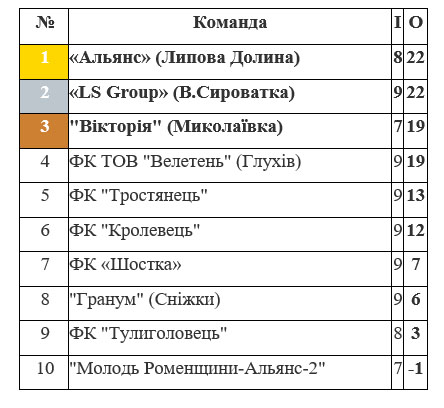 Турнірну таблицю обласної «вишки» очолюють «Альянс» та «LS Group». «Вікторію» наздогнав «Велетень». Але чинний віце-чемпіон області і аматорський чемпіон України зіграв на дві гри менше за глухівчан та верхнєсироватців і на одну – від липоводолинців.