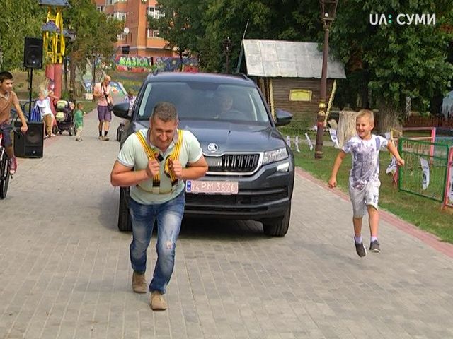 На завершення розважальної програми батьки мали змогу позмагатися у силі – перетягувати авто на 30 метрів.