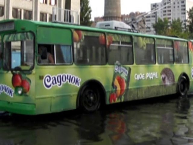 Після сильної зливи на Харьківській стоїть до десятка тролейбусів. Можлива причина - знеструмлення лінії через непогоду.