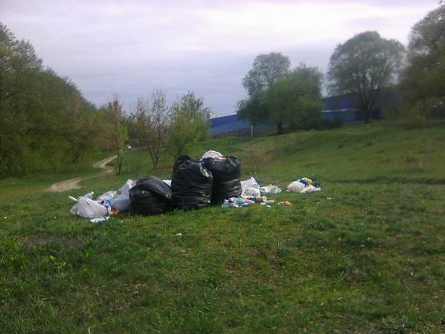 Пакети розривають безхатьки, у пошуку порожніх пляшок, собаки, у пошуку їжі, і вітер розносить сміття і порваних сміттєвих пакетів по берегу річки. Вивозити скоро буде нічого, і знов прийдеться збирати сміття. Для чого проводилась акція, щоб поставити відмітку, що її провели, чи ми дійсно дбаємо про Землю. Хотілося би почути відповідь від організаторів акції та екологів, чи будуть вивозити зібране сміття, чи річка буде далі залишатися смітником?