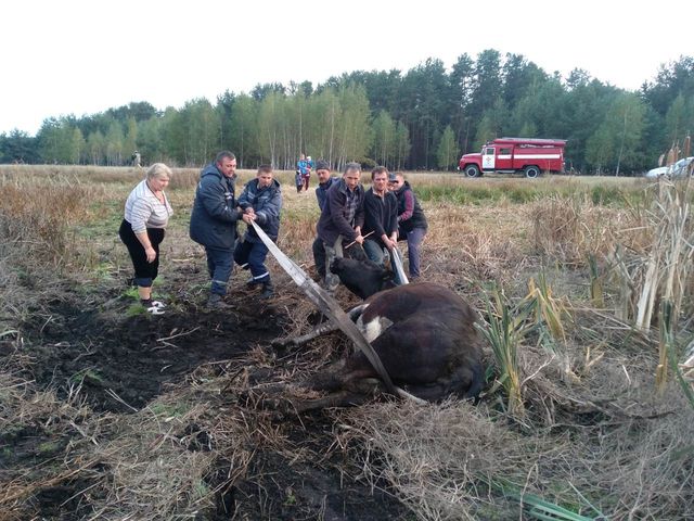 25 вересня о 18:39 на телефонну лінію екстреного виклику «101» надійшло повідомлення про необхідність надання допомоги. У м. Лебедин в районі вул. Куличанської у болото потрапила корова.
