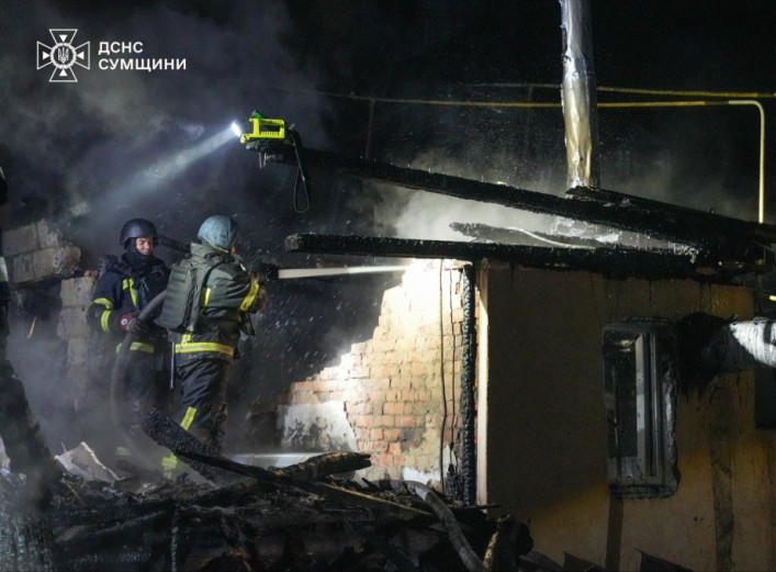 Уночі російські війська завдали серії ударів безпілотниками по Конотопській громаді. Внаслідок влучань зафіксовано пожежі та руйнування в житловому секторі. Як повідомили в ДСНС Сумщини, через атаку загорівся п’ятиповерховий житловий