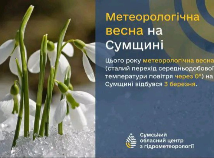 на Сумщині середньодобова температура повітря стабільно вища за 0°C. Це означає, що в регіон прийшла метеорологічна весна. Як повідомляє Сумський обласний центр з гідрометеорології, цього року весна почалася на тиждень