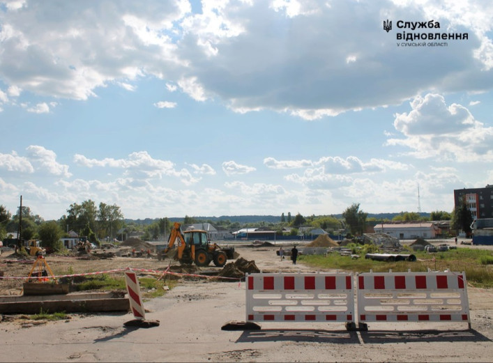 У Тростянці розпочалися роботи з відновлення Привокзальної площі, яка зазнала значних руйнувань у березні 2022 року внаслідок обстрілів. До війни ця площа була важливим транспортним вузлом і громадським простором. Будівельники вже демонтували