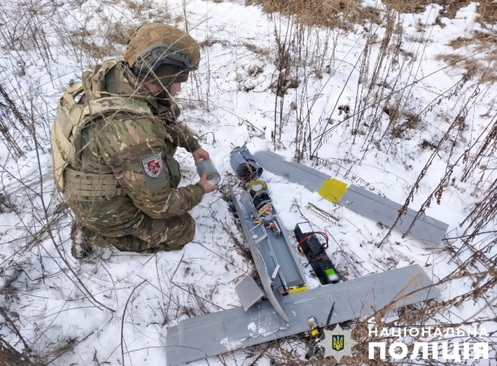 На Сумщині вибухотехніки поліції знешкодили російський безпілотник. Під час огляду дрона виявили бойову частину з кумулятивно-осколково-фугасно-запалювальним зарядом вагою близько трьох кілограмів. Вибухотехніки поліції знешкодили заряд, а