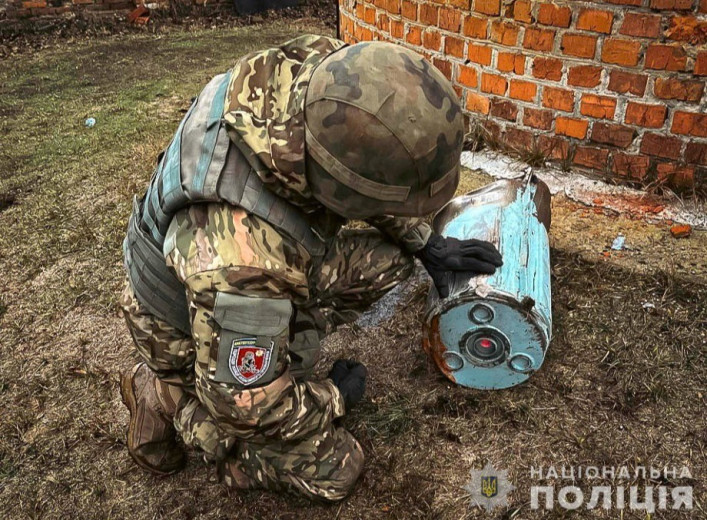 виявили залишки російського дрону, який ніс боєприпас, що не здетонував при скиданні. З метою запобігання небезпеці, вибухотехніки поліції з обережністю вилучили боєприпас та знищили його шляхом підриву на місці. Вкотре