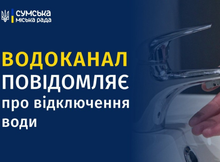У центральній частині Сум 8 квітня тимчасово припинено водопостачання для проведення ремонтних робіт. Комунальне підприємство "Міськводоканал" міста Суми інформує про тимчасове припинення подачі води 8 квітня з 9:30 у зв'язку з необхідністю