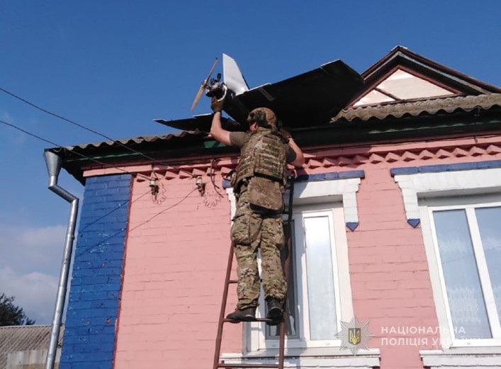 У Сумському районі під час чергової російської атаки ворожий безпілотник впав просто на дах приватного будинку. На щастя, вибуху не сталося, і ніхто не постраждав. На місце події прибула мобільна група вибухотехніків поліції Сумської області.