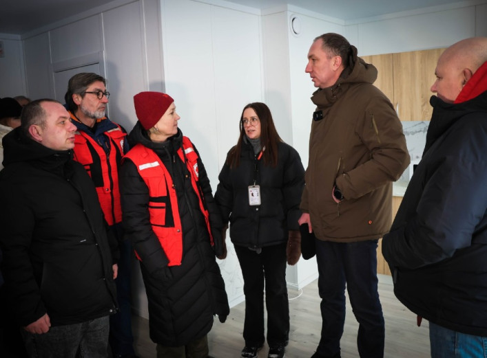 Хрест на чолі з генеральною секретаркою Ульрікою Модер, а також представники Міжнародний Комітет Червоного Хреста. Під час візиту делегації презентували проєкт будівництва модульного містечка для внутрішньо переміщених осіб,