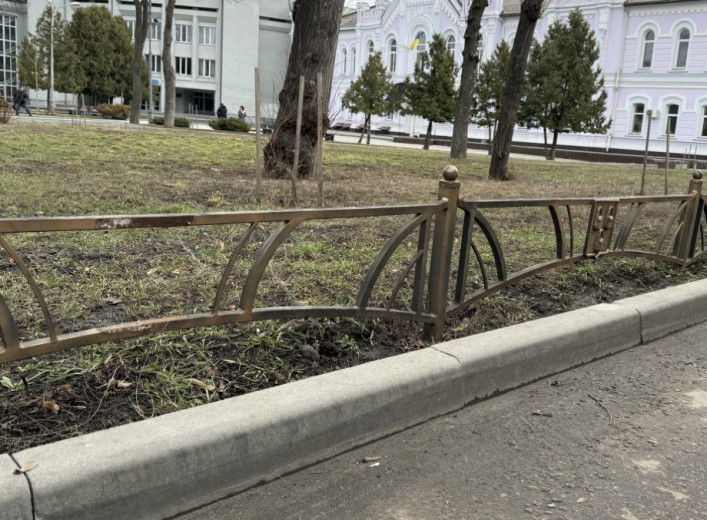 З огорожі скверу Шевченка в Сумах зникли металеві таблички із зображенням гербів міста. Ця огорожа була встановлена у 2019 році під час реконструкції скверу. Нагадаємо: за останній рік у місті зафіксовано випадки вандалізму: викрадення тростини
