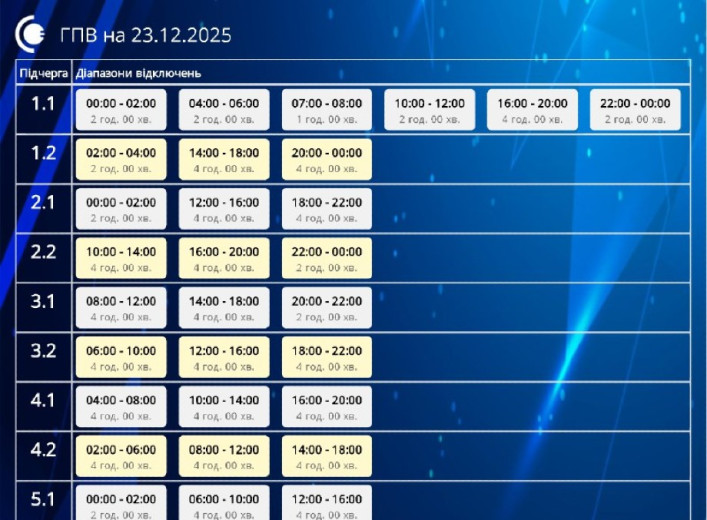 Завтра, 23 грудня, у Сумській області продовжуватимуть діяти обмеження електропостачання. Графіки погодинних відключень впроваджуються згідно з обсягами, які встановила національна енергетична компанія Укренерго. Як повідомили в АТ «Сумиобленерго»,