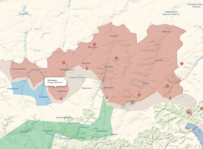 Українські Сили оборони досягли успіхів у районі Кіндратівки Хотінської громади, що розташована на північ від Сум. Про це повідомляє аналітичний проєкт Deep State. Наразі окупована територія на північ від Сум становить 209 квадратних кілометрів.