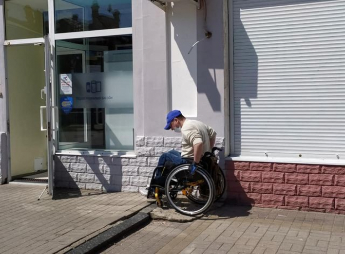до магазину, аптеки чи іншої установи, якщо туди ведуть лише круті або нерівні сходи. Але не тільки пандус вирішує доступність: «Знову-таки, я не можу зайти в заклади без супроводжуючих. Візьмемо навіть ті, які