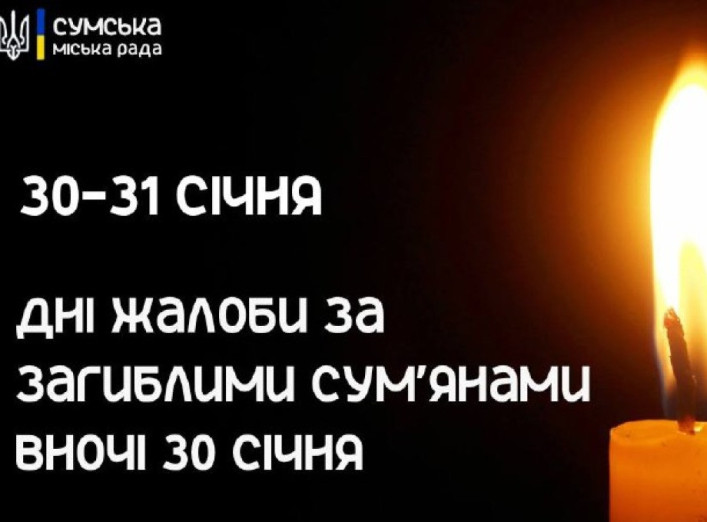 У Сумській міській громаді четвер, 30 січня, та п'ятниця, 31 січня, оголошені Днями жалоби за загиблими внаслідок ворожої атаки, що сталася сьогодні вночі. Відповідне розпорядження підписав в. о. міського голови Артем Кобзар. Станом на 8:00