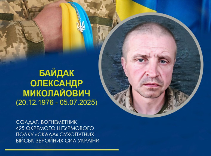 Сьогодні Білопільська громада провела в останню путь солдата Олександра Миколайовича Байдака, 48-річного вогнеметника 425 окремого штурмового полку «Скала». Він загинув 5 липня під час виконання бойового завдання поблизу населеного