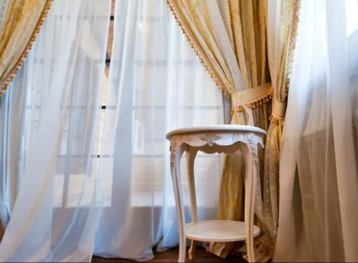– это тонкий материал, очень прозрачный и имеет гладкую поверхность. Это один из любимых тканей дизайнеров интерьеров. Органза легко чистится, прочна и долговечна, обладает необходимой для декора эластичностью.