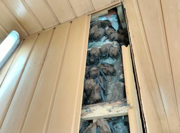 Понад 900 червонокнижних рудих вечірниць зимували в обшивці балкона квартири в Харкові, поки не почали виходити, руйнуючи конструкцію. Про це повідомляє Український центр реабілітації рукокрилих. Колонію кажанів виявили, коли тварини почали