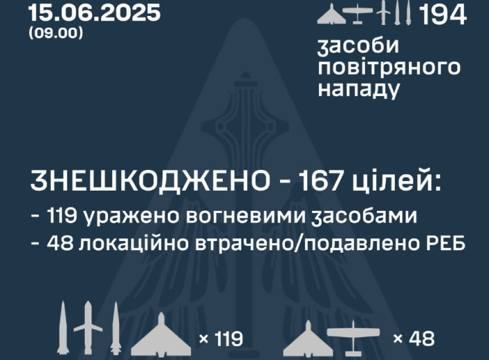 та командування Повітряних сил ЗСУ. Загарбники здійснили 55 пусків ракет повітряного та морського базування (до 2 Х-47 "Кинджал", до 40 КР "Х-101/Х-555", до 9 КР "Калібр", 4 КАР Х-59): Х-47 "Кинджал" - з двох літаків