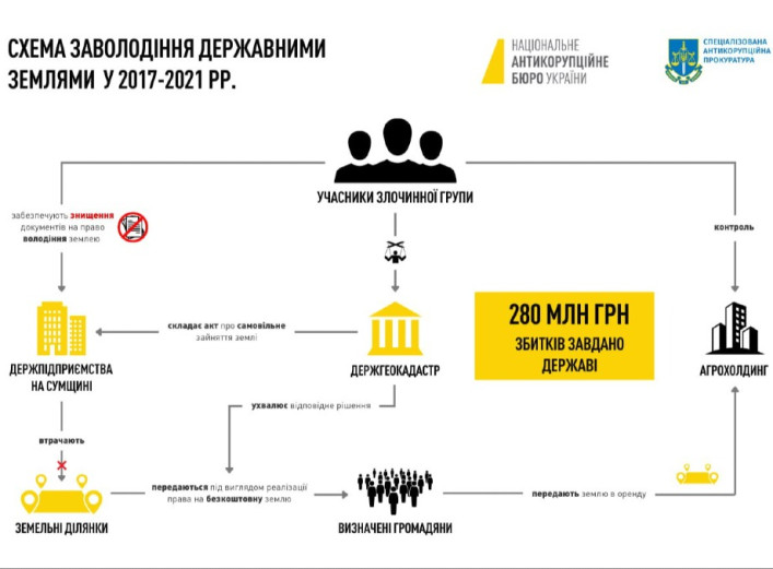 Спеціалізована антикорупційна прокуратура (САП) повідомила про завершення досудового розслідування у справі про протиправне заволодіння державними землями на Сумщині. Як встановило слідство, у 2017 році організована злочинна група, до складу