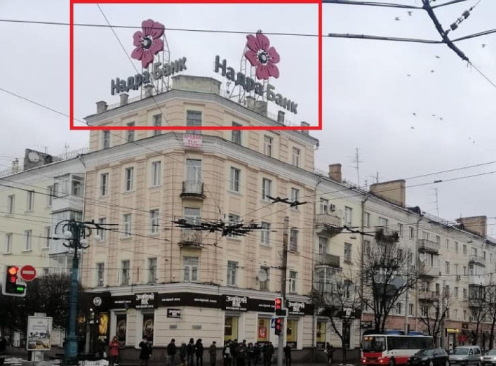 Директор комунального підприємства "Зеленбуд" Єфрем Лазарєв повідомив про скасування демонтажу застарілої реклами "Надра Банку". Раніше підприємство виграло тендер на виконання цих робіт за 100 тисяч гривень. За словами Лазарєва, після укладення