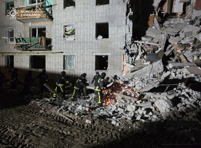 У ніч на 26 березня російські безпілотники атакували місто Охтирка. Як повідомляє поліція Сумщини, внаслідок обстрілу пошкоджено об'єкти цивільної інфраструктури, зокрема два багатоквартирні житлові будинки, п'ять автомобілів, чотири магазини,