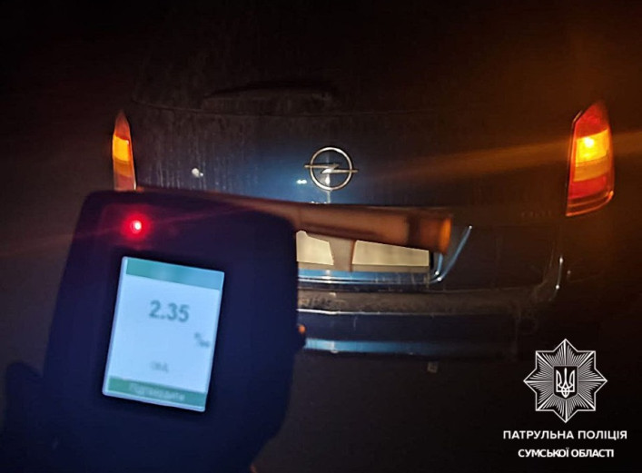 Вночі, під час комендантської години, на вулиці Охтирській в Сумах патрульні зупинили автомобіль Opel Astra. У 35-річного водія виявили ознаки алкогольного сп’яніння. Як повідомила патрульна поліція Сумщини, огляд на місці зупинки показав