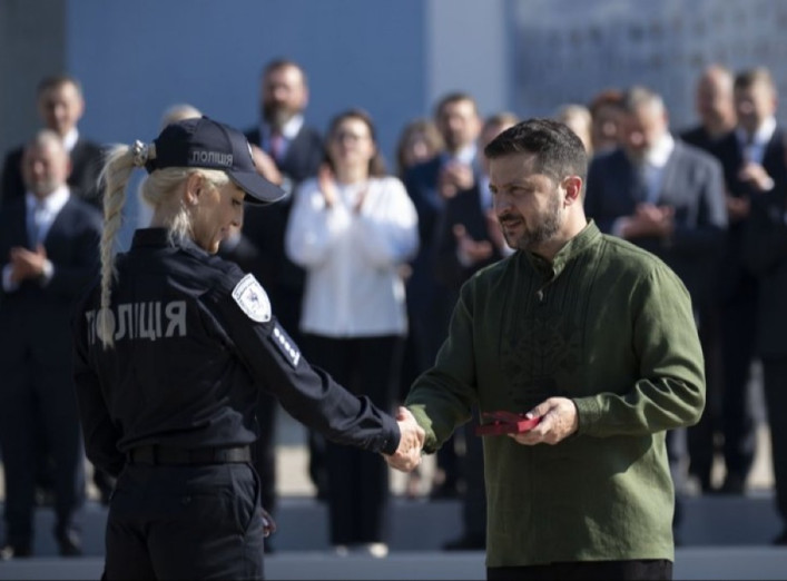Президент Володимир Зеленський сьогодні, 15 липня, вручив Олені Ставицькій з Сумщини орден "За мужність" ІІІ ступеня. Поліцейська є учасницею спецпідрозділу "Білий янгол", який займається евакуацією людей з прикордонних територій Сумської області. Про