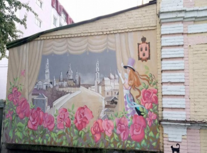 В Сумах на здании по адресу Покровская площадь, 6 появился очередной мурал. На рисунке изображены знакомые всем жителям очертания архитектурных композиций. В Сумах на здании по адресу Покровская площадь, 6 появился очередной мурал. На