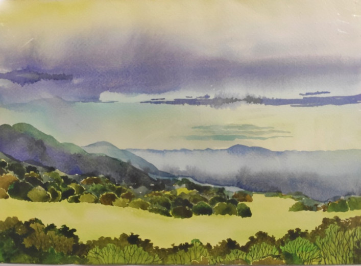 персональна виставка, тож на ній представлені роботи , виконані у різних техніках та жанрах. Майже половина із них — пейзажі Італії, написані аквареллю. В експозиції вони скомпоновані попарно, тож виникає певний ефект