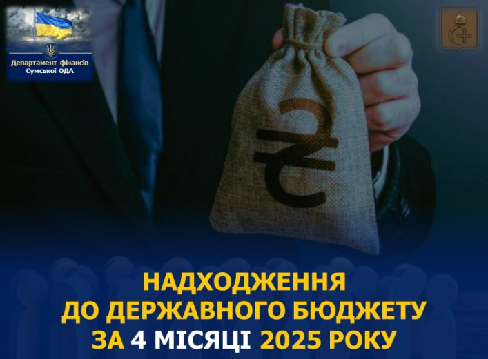 За перші чотири місяці 2025 року до загального та спеціального фондів державного бюджету від платників податків Сумської області надійшло 6,9 мільярда гривень, що на 1,8 мільярда гривень більше, ніж за аналогічний період минулого року. Про це