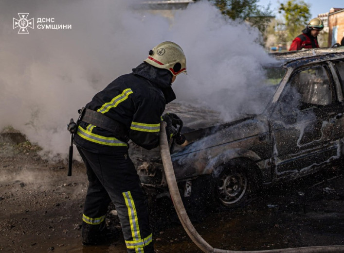 газового балона в автомобілі, що горів у дворі багатоповерхівки. 18 квітня у Сумах на вулиці Герасима Кондратьєва сталася пожежа автомобіля, що стояв біля багатоповерхового житлового будинку. Прибулі рятувальники оперативно